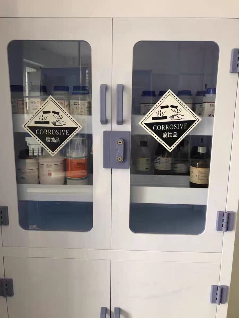 The dual-lock systems, leak-proof designs, and ventilation features of PP cabinets align with Canadian regulations regarding hazardous material storage. Additionally, the prominent “Corrosive Substance” labeling meets WHMIS requirements for hazardous material identification, ensuring compliance with federal workplace safety legislation.