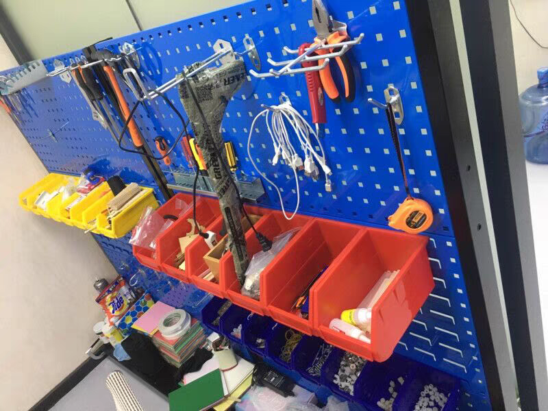 - Mobile carts with perforated board panels